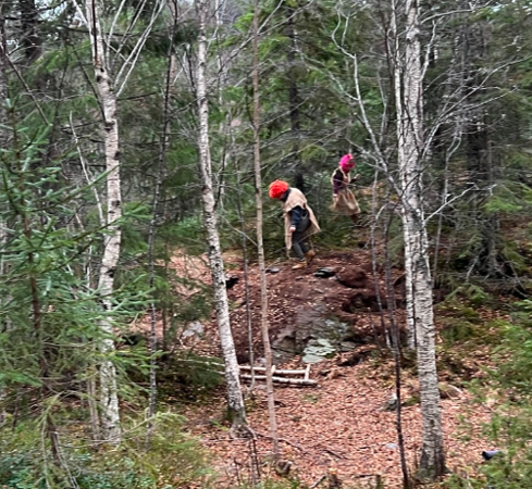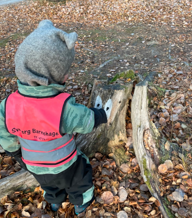 Som dere vet, er vi i Sveberg Barnehage veldig glade i naturen og ferdes daglig i våre skoger og nærområder. Vi har hatt mistanken lenge, og nå vet vi at det finnes troll der også. I forrige uke så vi to av dem! Da vi kom gående opp stien mot "Hemmeligplassen" sto det to stykker der oppe! De sprat fort inn mellom trærne da de oppdaget oss. Likevel virket det som de var litt nysgjerrige... De holdt seg på avstand, men fulgte oss et godt stykke videre på stien. Plutselig ble de borte, men da vi kom fram til "Furutrollet" så vi at de sto og danset til trollmusikk nede på haugen. Vi kunne stå å betrakte dem en liten stund, før vi prøvde å rope til dem. De svarte oss ikke - men forsvant fort bakom haugen, og ble helt borte. Vi lette, men fant ikke annet enn noen små spor etter dem.