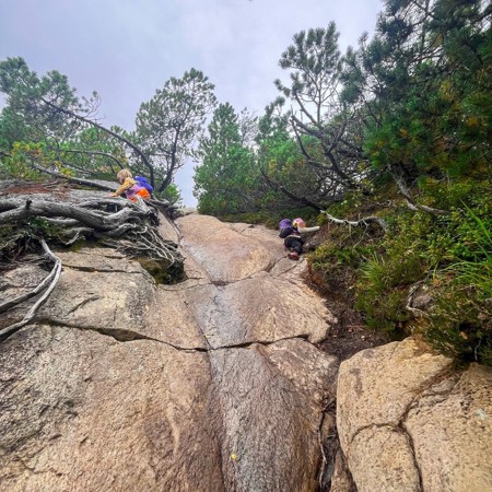 Under lunsjen ble vi raskt enige om at vi ville ha litt mer ut av turen, det hadde jo gått så kjapt og fint opp hit... Dermed landa vi på at vi tar en topp til! Så da bar det videre bortover til Våttåkammen. Der var det ganske flatt bortover, men vi fikk bryna oss litt likevel. Store deler av stien var bløtlagt og gjørmete, og vi måtte samarbeide og finne gode løsninger for å prøve å komme oss mest mulig tørrskodd fram.