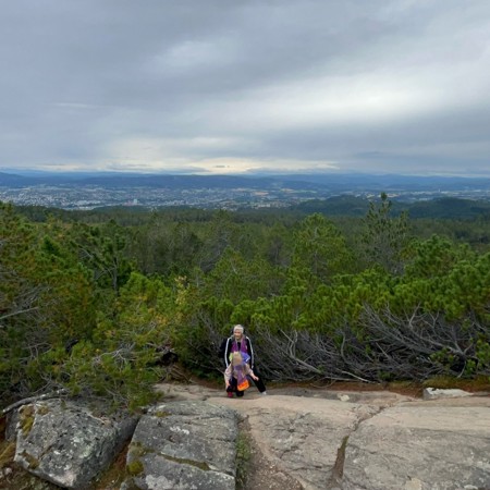 Vi fikk litt av en utsikt på toppene! Den strakte seg langt av gårde, og noen lurte på om vi så helt hjem, eller kanskje helt til Sverige? Nye opplevelser for barna, og det var godt å oppleve et naturmiljø vi ikke hadde vært i tidligere. Mye nytt og spennende å se!