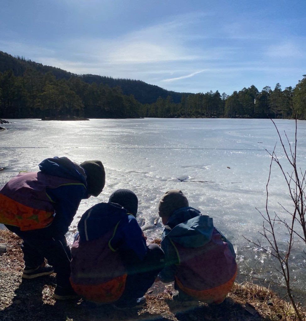 Dette er endringer barna legger godt merke til. Vi undrer oss sammen: Hvor blir snøen av? Hvor kommer vannet fra? Hva skjer med planter og dyr når det blir varmere? Samtalene gir barna begynnende forståelse for naturens sammenhenger, og for hvordan alt liv henger sammen.