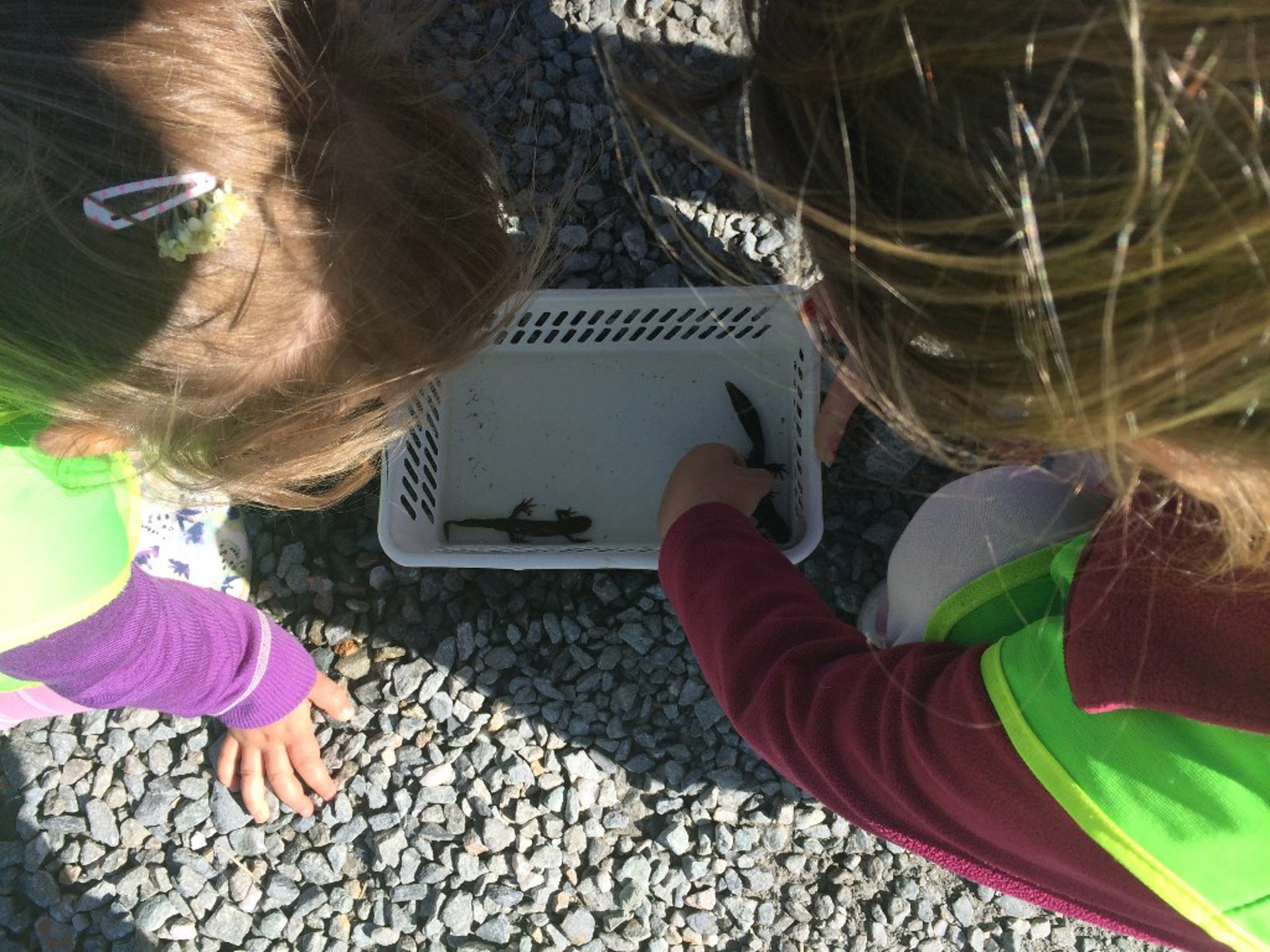 Vi fant flere storsalamandere i dag. Spennende å studere dyrene og kjenne på de. "De lignet på firfisler" var det et barn som sa.